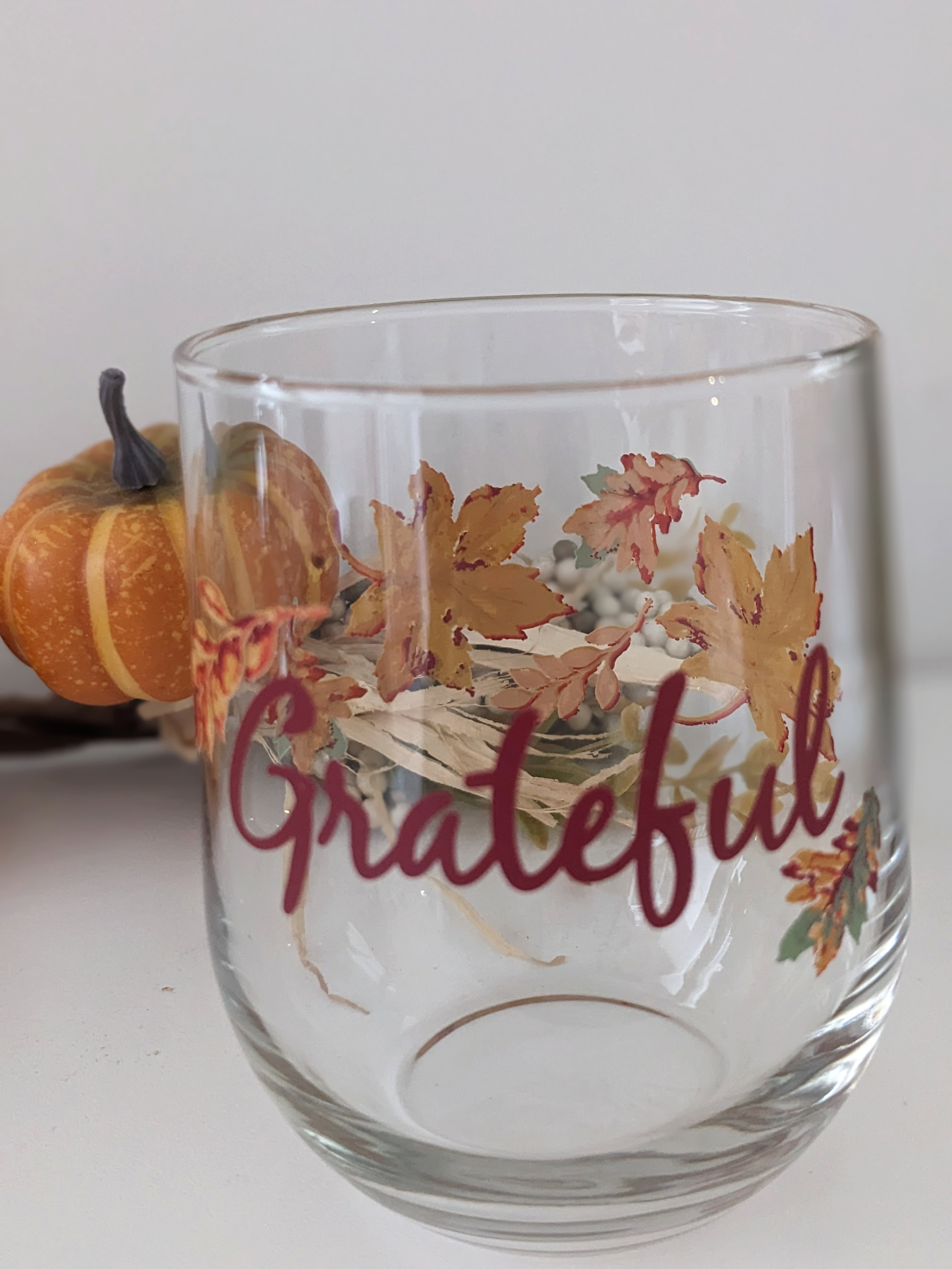 . Harvest Inspired Grateful Stemless Wine Glass, 16.8-oz.