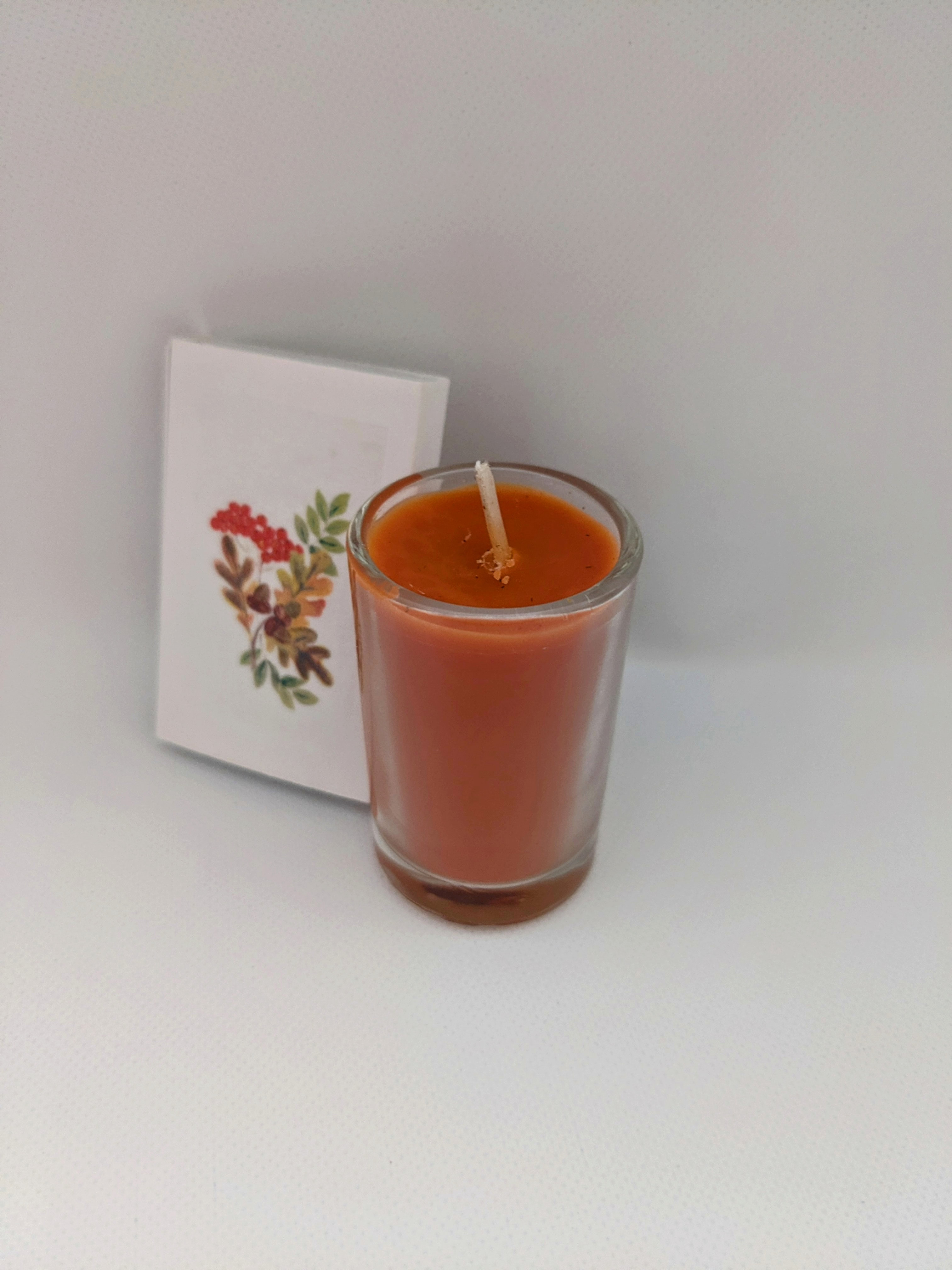 . Spiced Pumpkin Scented Glass Votive Candle 2” x 1.5 in. with matches